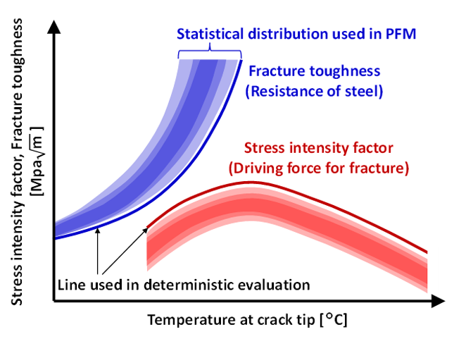 PFM (Probabilistic Fracture mechanics) provides a quantitative approach by calculating the probability and/or frequency of failure, rather than a simple “yes or no” assessment of whether a component will fail. Even when the likelihood of failure is extremely low and considered negligible, PFM rigorously computes the probability and expresses it as a numerical value. These values enable more in-depth discussions on safety and operational strategies based on risk.